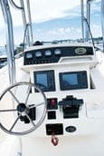 At the helm, an electro-mechanical instrument panel rises from the top of the control station ahead of the steering wheel, placing the electronics at a convenient viewing level. But more importantly, this same system lowers the electronics into hiding when not in use, keeping them secure and protected from the elements.