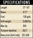 Overall, the new 221 proved to be a very good performer, and is certainly much more stylish than my old 22. Its combination of good looks, solid construction, and performance adds up to a versatile 22-footer that will be equally at home doing light bay service or venturing offshore.