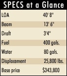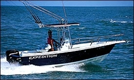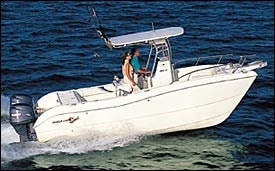 Aquasport’s new 275 Explorer was designed as a “pocket canyon runner,” and has the speed and accommodations to makelong offshore runs. Rigged with twin 200-hp Johnson outboards,the 275 cruises at 38.5 mph and tops out at 53 mph. It has roomfor four people to sleep aboard.Belowdecks there’s 6′ 4″ of headroom and agalley with a molded-in sink, a dual-voltage refrigerator anda single-burner alcohol/electric stove. The head compartment featuresa molded-fiberglass sink and vanity, as well as a handheld shower.Sleeping accommodations include a forward vee-berth and a comfortablemid-cabin berth.