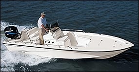The custom console has a switch panel with breakersand lighted switches, as well as an electronics box. The Teleflexgauge package includes a tach, voltmeter, fuel and water-pressuregauges. Standard items include a deluxe stainless steering wheel,a leaning post, flush high-speed live well pickups with strainersand anti-feedback steering. Options include a battery charger,trim tabs, tilt steering, pop-up cleats, Lowrance electronics,a front casting platform and a push pole. Back Country Boats,Sarasota, FL; (941) 359-3500.|