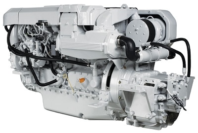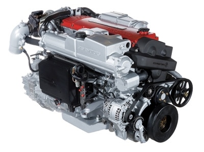 The six-cylinder Steyr MO286H43 diesel is the latest light-yet-powerful offering from this Austrian manufacturer. The engine block and cylinder head are made from high-grade cast iron. Special alloys and high-silicon aluminum make up the crankshaft and oil-cooled pistons. That adds up to a 2.65-pounds-per-horsepower ratio. Total horsepower output is 280. With high-pressure fuel injection, a freshwater cooling system and dual cooling circuit to meet more stringent emission standards, this compact engine was designed especially for sterndrive boats needing quicker acceleration and response. The MO286H43 is Tier 2 compliant.
