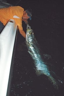 The fight ended an hour later. With my arms and legs quivering and sweat darkening my long-sleeve T-shirt, the fish finally came to boatside. Tuttle took a thumping as he wrestled the hook from the tarpon’s maw, but he managed to pull it free without getting yanked overboard. After watching the fish kick free, we exchanged high-fives and hollered into the night sky.