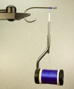 | Step 1: Place the hook in the vise and secure thread to the hook. |