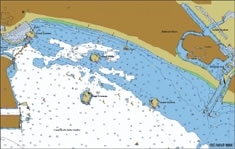 Long Beach experts often fish the harbor’s four manmade oil islands, shown here on an electronic chart from C-MAP.|