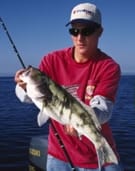 Josh Hendricks displays proof that decent sand bass action can be enjoyed inside the busy harbor.|