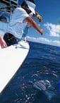 One of the main indicators of fish activity on the North Drop are frigate birds, and Loren soon turned the Avante in the direction of one that was circling suspiciously. As we approached, a school of flying fish burst from the water and sailed over the wavetops.