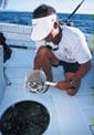 Although Loren doesn’t really need his sophisticated color depthsounder to pinpoint his hot spots, he turned it on for my benefit. When the bottom rose from 80 to 65 feet, he dipped out a netful of pilchards from the live well and flung them into the cobalt water behind the boat. Almost immediately, boobies and frigate birds swooped in from the rocks to pick off the panicked prey, which was leaping from the water to avoid the onslaught of frenzied game fish.